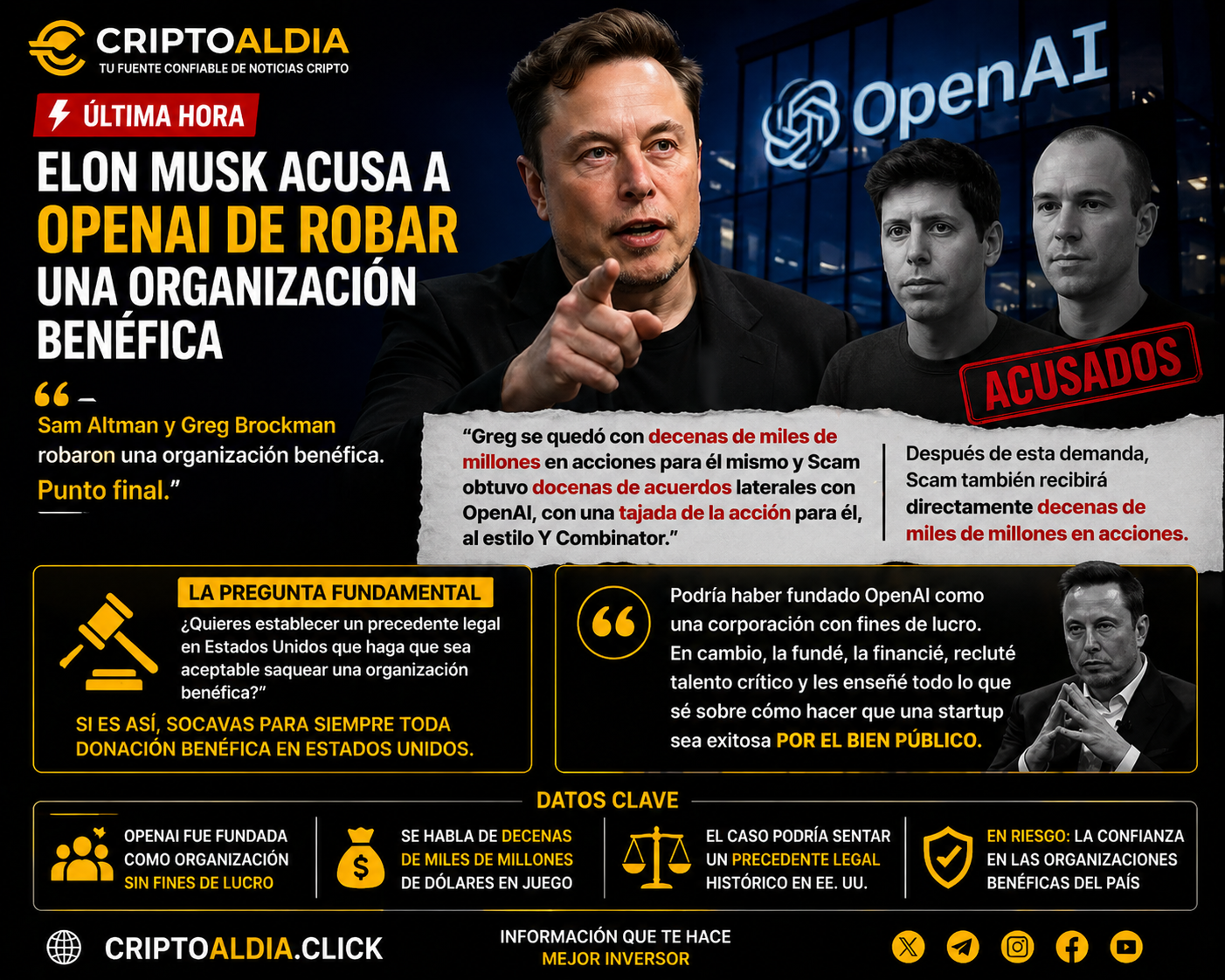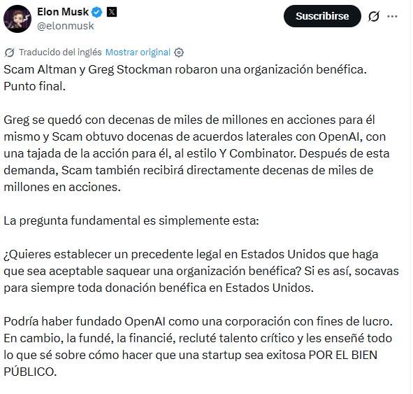 En conclusión, las declaraciones de Elon Musk no solo son un ataque directo a figuras clave de OpenAI, sino también una advertencia sobre los riesgos de desvirtuar estructuras diseñadas para el bien común. Más allá de quién tenga razón, este caso pone sobre la mesa la necesidad de mayor claridad legal y ética en la evolución de organizaciones tecnológicas. Para inversionistas, desarrolladores y la sociedad en general, el desenlace de este conflicto podría redefinir los límites entre innovación, lucro y responsabilidad social en la era de la inteligencia artificial.
